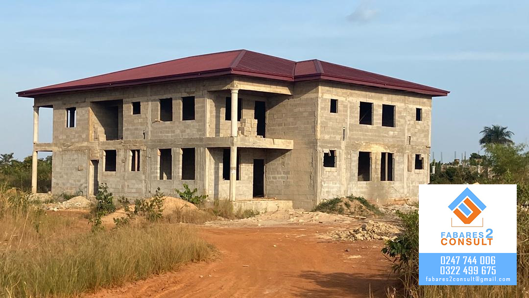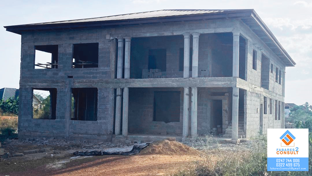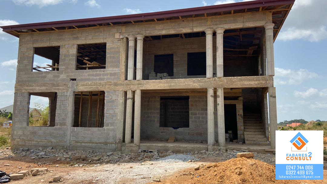 2- Storey 8-master bedroom apartment (uncompleted) at Sarbin Akrofrom in the Atwima Kwanwoma district. 4 master bedrooms, a large hall and big kitchen on each floor. Call Fabares 2 Consult on 0247744006.